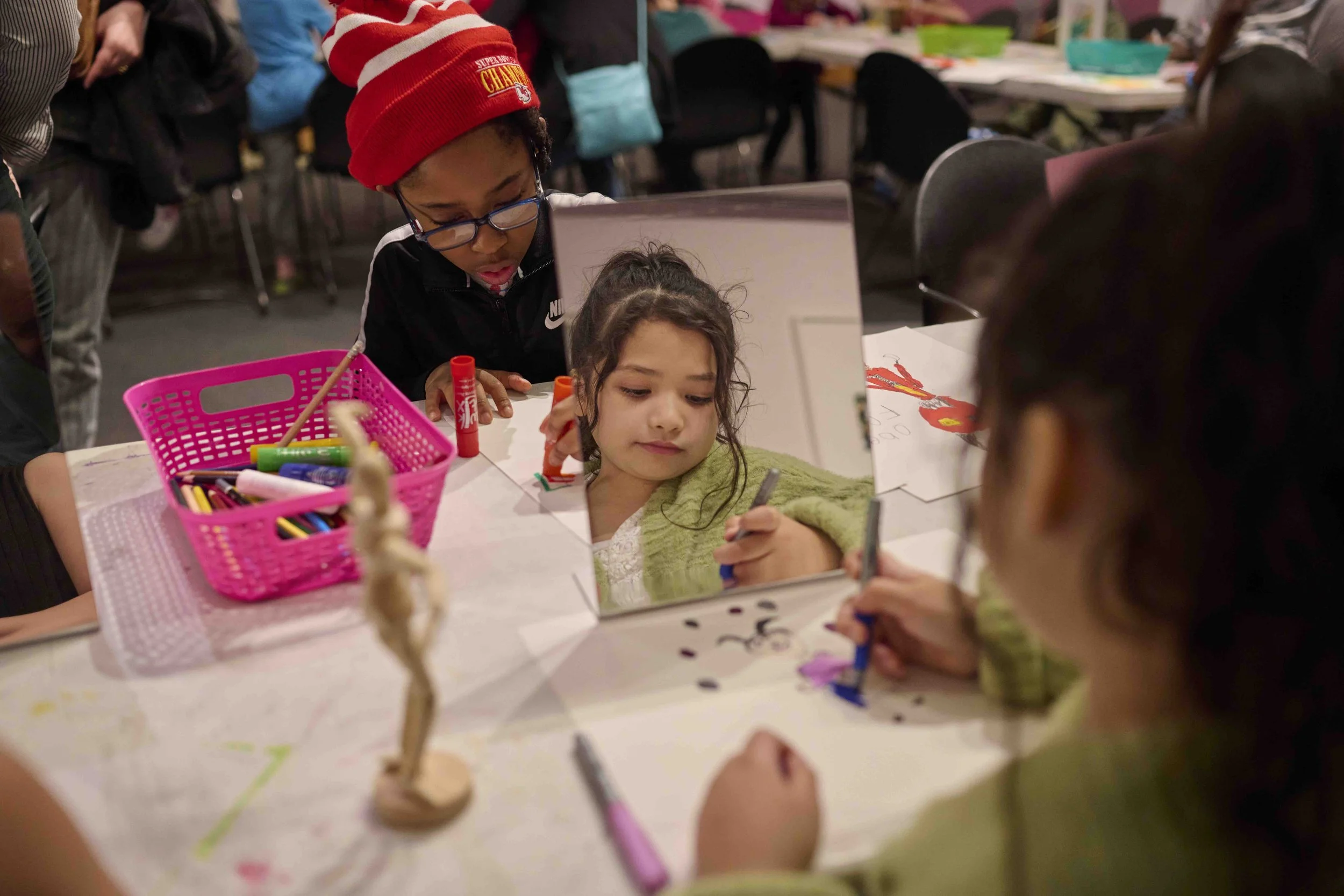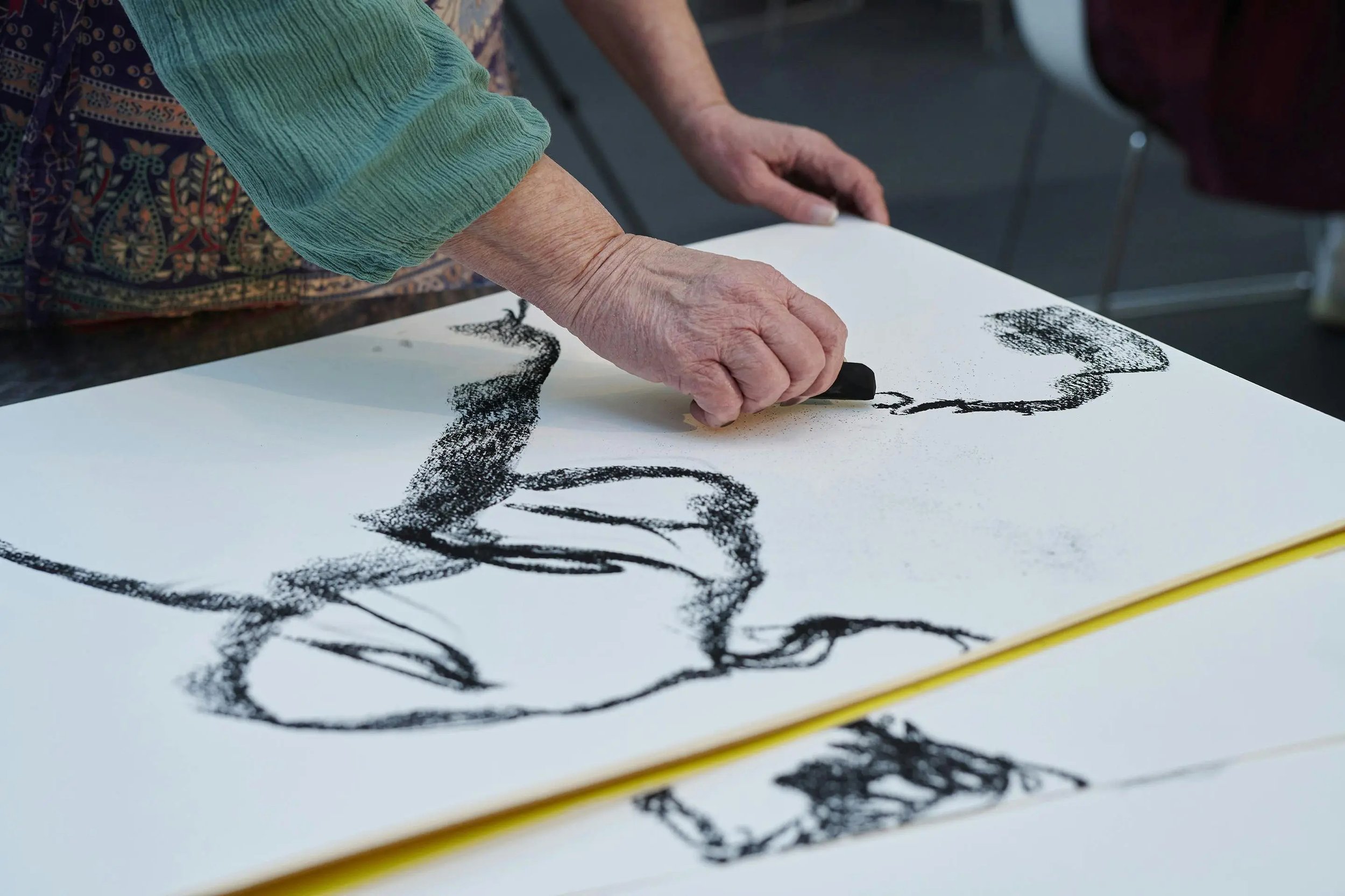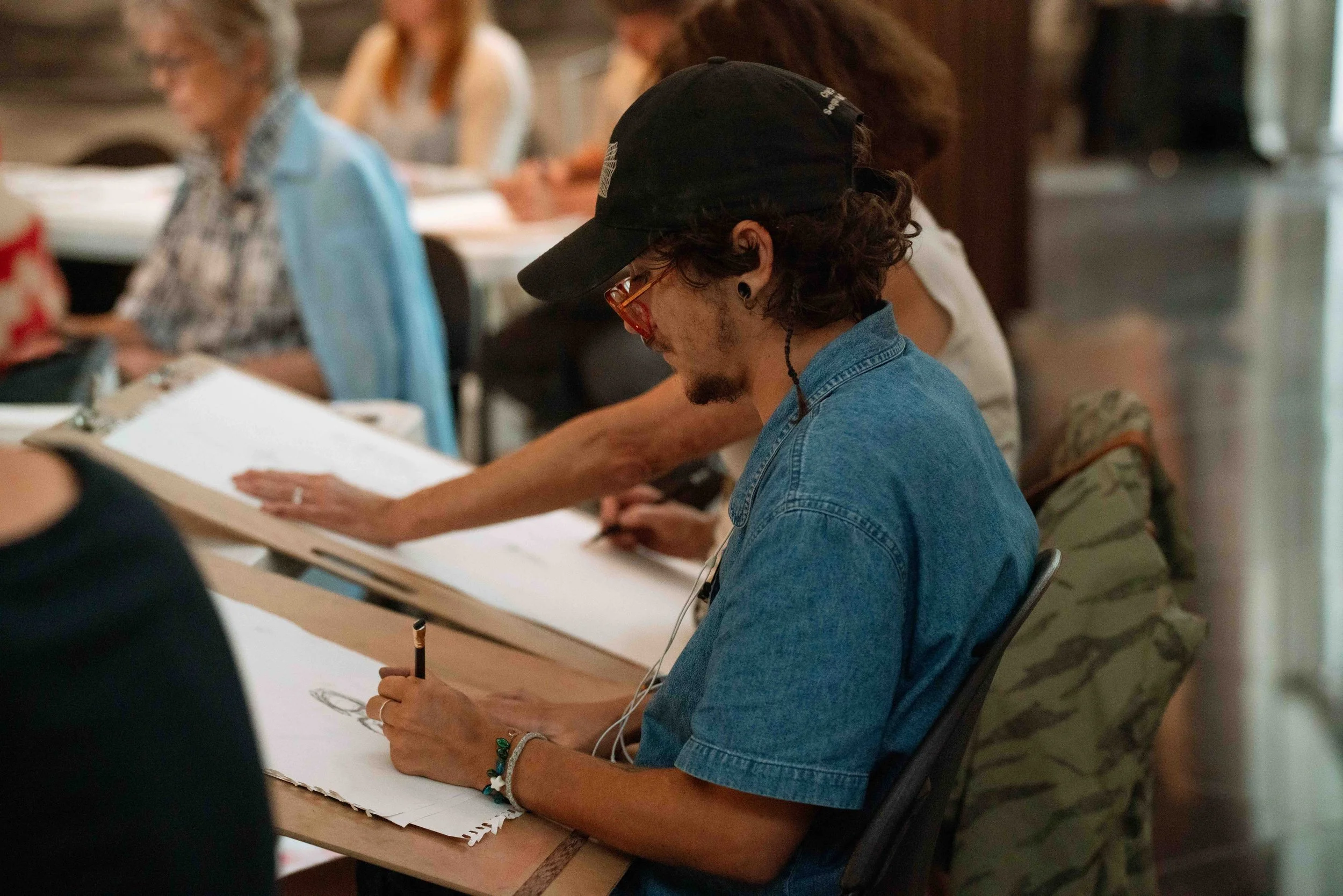 Program Highlight: In 2025, Kemper Museum partnered with Manor Records to feature local live music at select open drawing sessions. In November, we took Open Drawing offsite and onto the KC Streetcar in collaboration with the Kansas City Streetcar Authority. In December, the program hosted textile artist, Alyx Jacobs for custom chainstitching at Open Drawing.